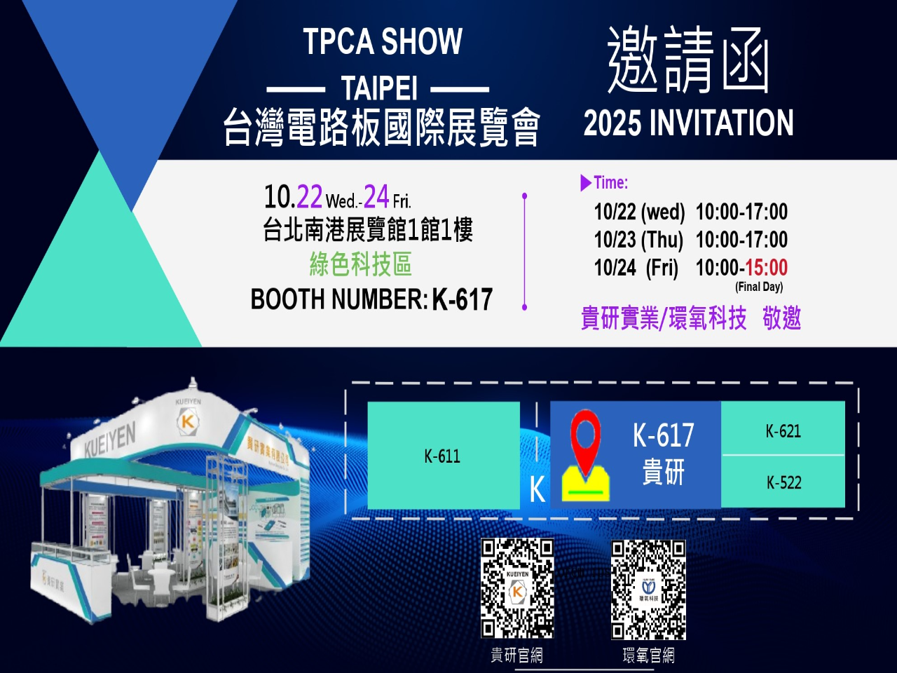 貴研實業有限公司 與 環氧科技有限公司 將聯合參與「第26屆台灣電路板國際展覽會」,誠摯邀請業界夥伴、合作廠商及有興趣的朋友蒞臨參觀~