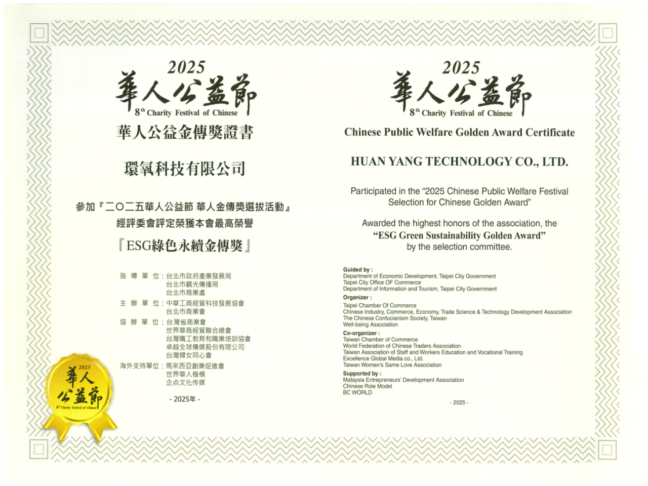 環氧科技在公益貢獻上不遺餘力,接受全球華人公益盛典之「華人ESG綠色永續金傳獎」頒獎,頒獎者由前立法院長王金平先生頒獎,深表榮幸。